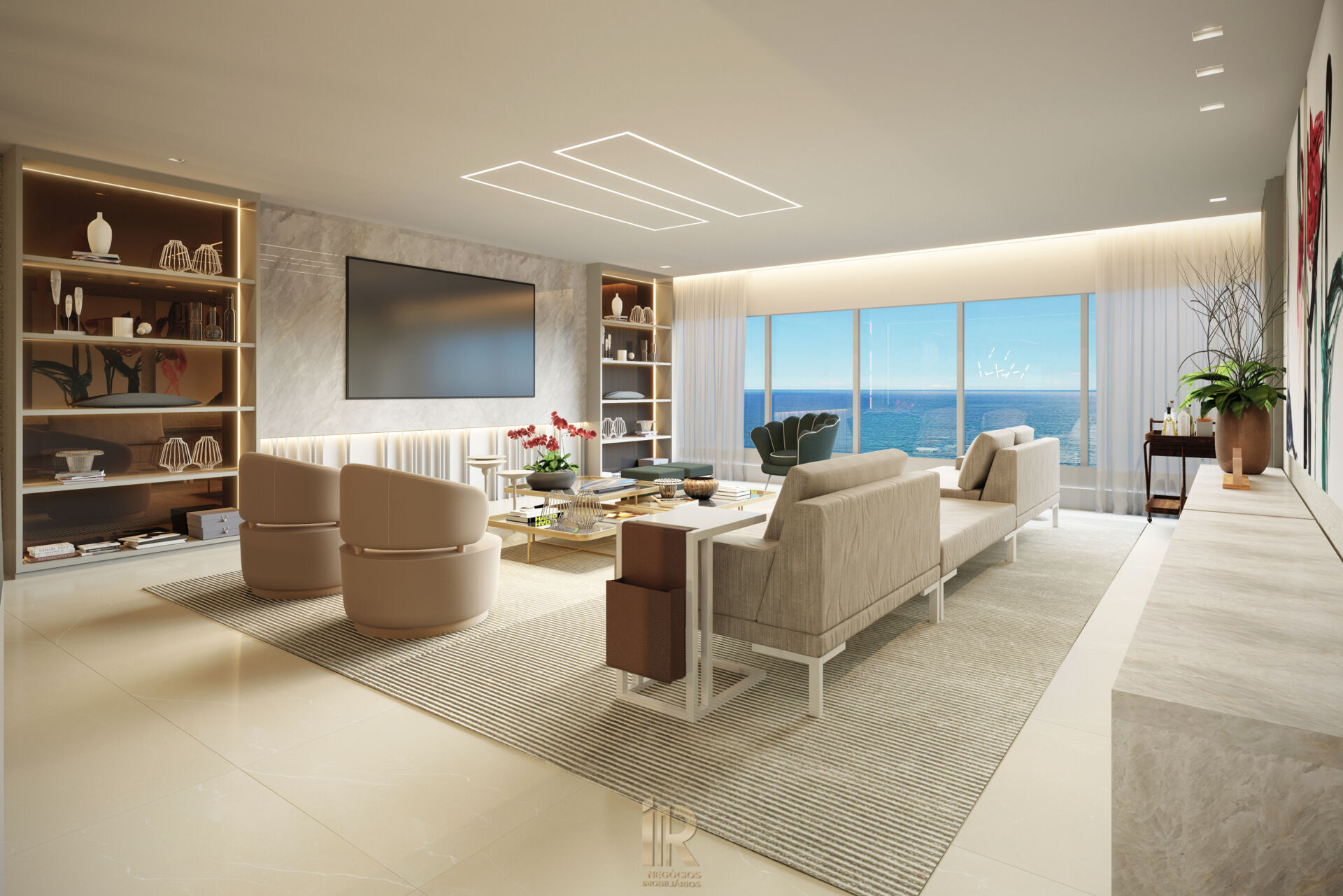 03 suítes, sala está, jantar, circulação, lavabo, cozinha, área de serviço, banho serviço, despensa e cômodo para condensadores de ar-condicionado split.